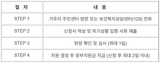 - 위기상황 발생 후 즉시 신청하는 것이 중요합니다.
